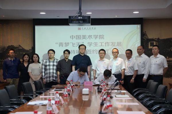 5月26日下午,“青梦飞天”学生工作发展扶持项目签约仪式在中国美术学院南山校区8号楼三楼会议室举行。中国美术学院党委副书记孙旭东、学工部部长、教育基金会副理事长竺照轩,贵州茅台酒销售有限公司浙江省区经理李波、贵州茅台浙江省区联谊会会长董克俊、副会长潘文祥、秘书长孙敏以及有关部门负责人出席签约仪式。
