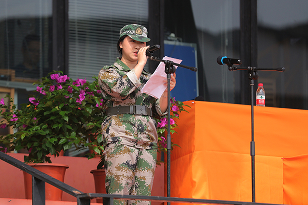 创新设计学院王紫嫣同学代表全体参训学员发言,她分享了军训生活的感受和收获,并代表全体参训学员向师长和教官们致以了衷心的感谢。