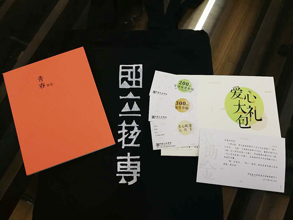 在现场,学校专设资助工作咨询和心理健康辅导两个窗口,为学生及家长宣传学院各项奖助政策,为同学们提供心理辅导,送去了学校的爱心和慰问。今年,学生资助管理中心还为“绿色通道”入学的新生精心准备了“爱心大礼包”,内容包括生活物品、生活补贴、军训服装、军训餐费补助、在校期间学生平安保险等,另外还专门挑选了《艺术的故事》、《平凡的世界》、《国立艺专往事》等三本励志书籍,鼓励同学们树立人生志向、潜心学业发展、勇攀艺术高峰。此外,中心还准备了“爱心帐篷”供新生家长休息。
