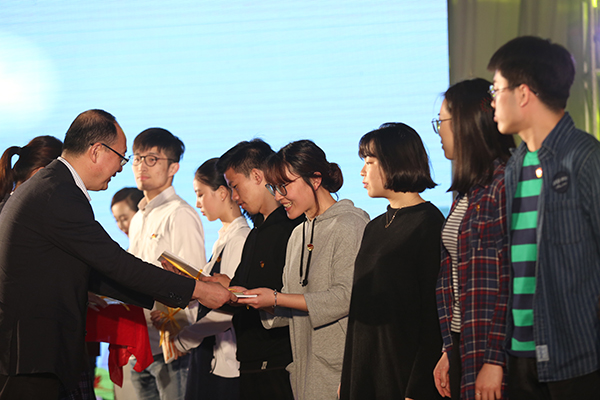 会上隆重表彰了一批优秀团员、团干、优秀学生干部、优秀班团集体,志愿之星、西部支教志愿者。学工部长竺照轩宣读表彰决定,团委书记徐增鎏带领全体团员青年一同重温入团誓词。