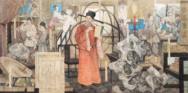 沈括与「梦溪笔谈」 尉晓榕、卢志强 中国画 183cm×367.5cm