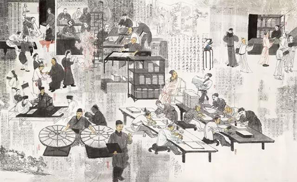 四库全书与南北七阁 张敏杰 版画 282cm×501.5cm