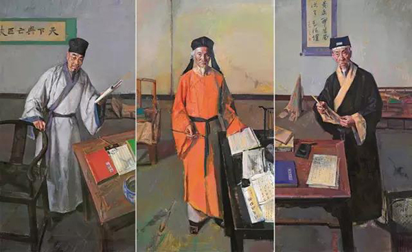 明末清初三大思想家 杨参军、卢家华、郑泓 油画 270cm×436.5cm