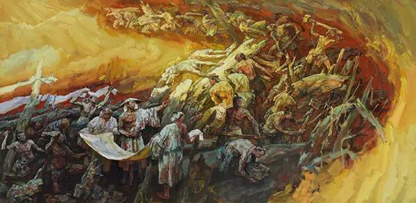 大禹治水 章仁缘 油画 270cm×530cm