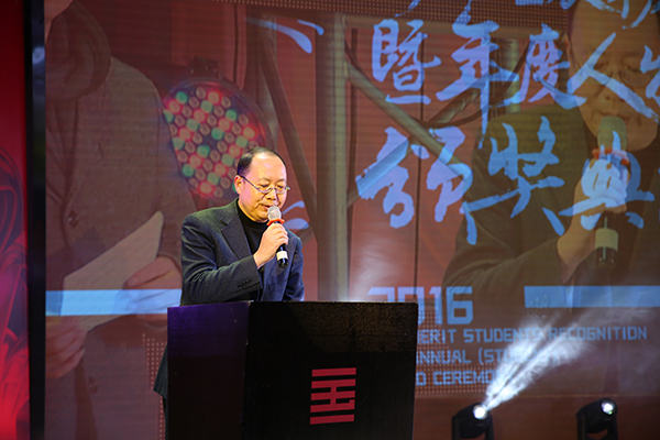 王赞指出,本次表彰典礼是学院坚守“三美”育人理想、坚持“立德树人”工作中所取得的丰硕成果的一次展示。同学们勤奋研创、博雅精进,在2016年取得了令人骄傲的成绩。学院正在向建设“双一流”大学目标挺进,希望广大学生能够以先进为榜样,锐意进取,开拓创新,勇攀高峰,共同为创建“双一流”大学而努力奋斗。