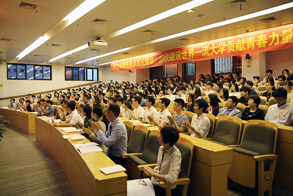 院党委副书记胡钟华代表学院党政讲话。他回顾了我院青年和共青团的光辉历史和典型人物,对我院的共青团和学生会工作表示肯定。同时,他代表院党委向团学组织和广大代表提出了四点希望:一是树立远大理想,坚定理想信念。二是坚持刻苦学习,增强知识本领。三是注重品德修养,锤炼意志品格。四是树立“社会即现场”的观念,知行合一。胡钟华希望我院广大团员青年抓住机会,好好学习,奋发图强,践行社会主义核心价值观、践行“行健、居敬、会通、履远”八字校训,为省重点高校建设、加快建设世界一流大学,为培养一流的艺术人才贡献青春和力量!