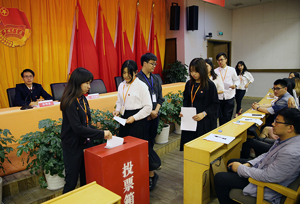 当天下午,本着公开、公平、公正的原则,大会选举产生了共青团中国美术学院第十六届委员会、中国美术学院学生会第十八届委员会,毛腾、许溪、吴丹、卓美红、徐元、徐戈、徐增鎏(以姓氏笔画为序)等7人当选共青团中国美术学院第十六届委员会委员,方沛婷、乔佳雯、吕伟滨、孙梓钧、杨可涵、应前程、宋澜、宋正浩、张亚楠、陈俊汝、周佳儿、郭最、龚艺虹、傅佳霖、赖安珂等(以姓氏笔画为序)等十五人当选中国美术学院学生会第十八届委员会委员。