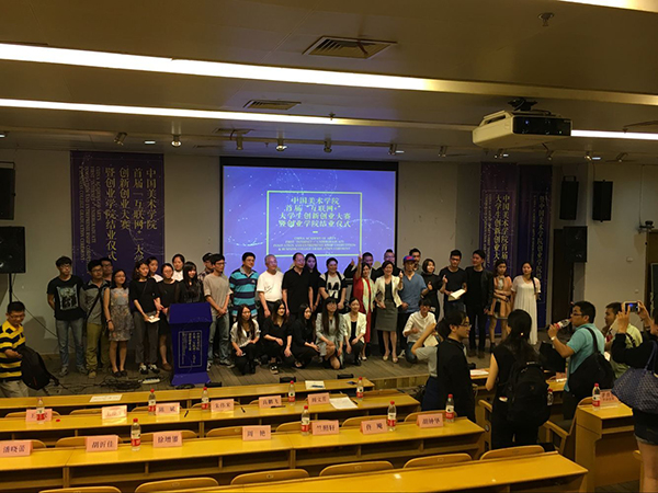 6月12日我院首届互联网+大学生创新创业大赛暨创业学院结业仪式在南山校区学术报告厅圆满落下帷幕。大赛由中国美术学院创业学院主办,邀请了国际创业学院(中国)副院长周文芳、中国美术学院设计学院教授、创业导师王炜民、银江孵化器投资部经理高鹏飞、杭州加号创客空间创始人朱伟米、浙江爱晚基金管理有限公司王亦平、麦鲜投资经理陈斌等六位评委,  赛伯乐等13家创投公司嘉宾。我院党委副书记胡钟华,学工部长竺照轩,教务处副处长佟飚,研工部副部长周艳、学工部副部长潘晓蕾、团委书记徐增鎏、之江创意园管委会副主任胡沂佳出席了本次大赛。