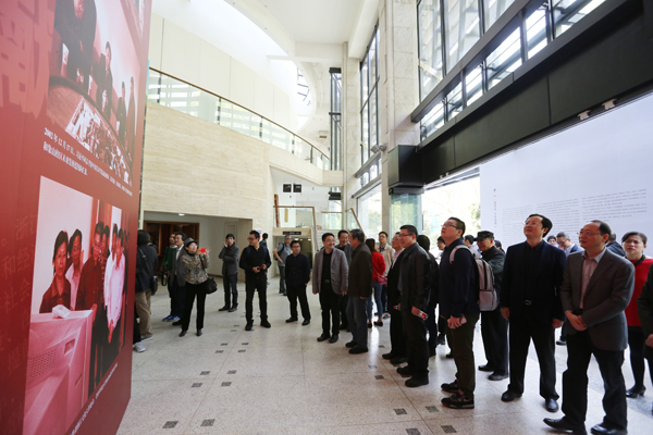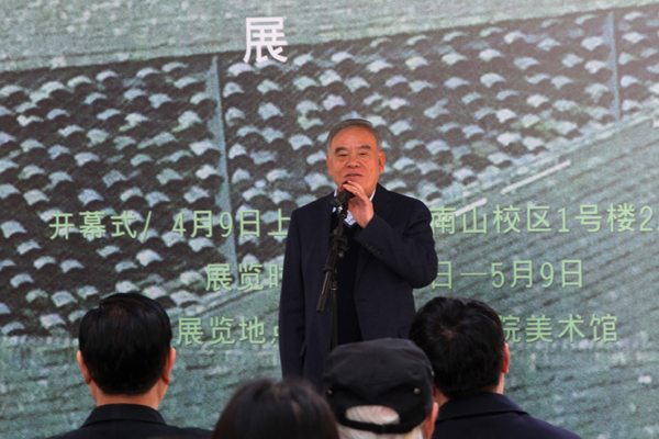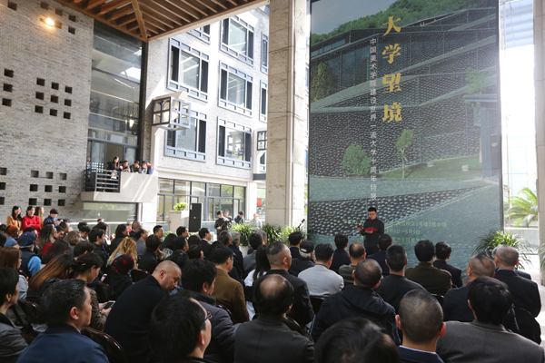 全国人大财经委副主任吕祖善宣布展览开幕,我院院长许江首先致辞,我院教师代表刘海勇和学生代表田震坤先后发言。开幕式由学院党委书记钱晓芳主持。