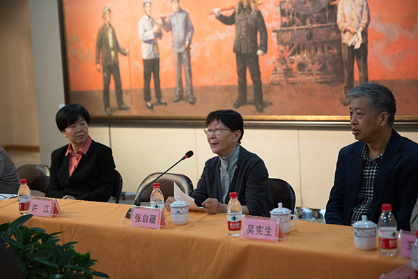 出席研讨会的老教授们也向与会老师同学们分享了自己艺术创作的个人经历。张自薿教授讲述了自己在基层的生活,与陕北人民同吃同住同劳动,她表示艺术家要对生活要感兴趣,由兴趣推开门。她当时写生时颇为喜欢当地的白头巾黑棉袄,对赶集春节社火等活动非常感兴趣,正是在贫瘠的土地上,艰苦的生活滋养出的却是乐观淳朴的精神。