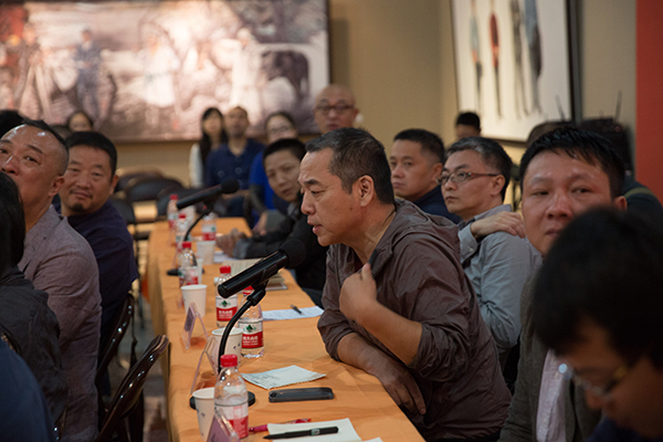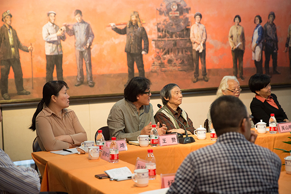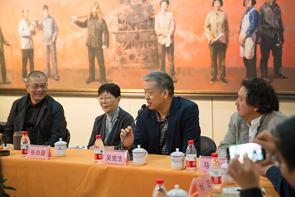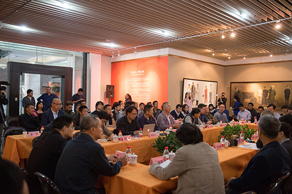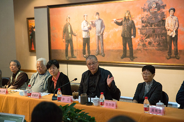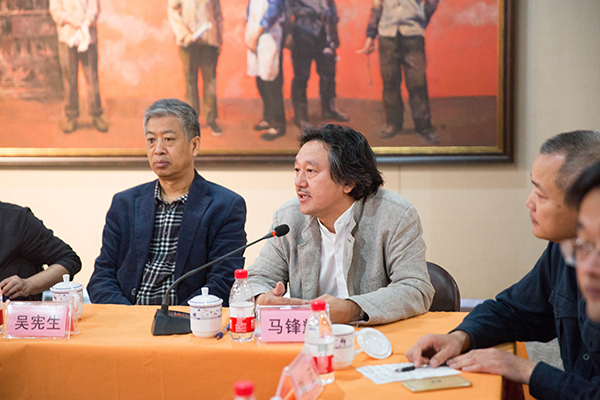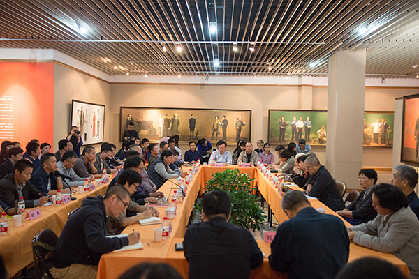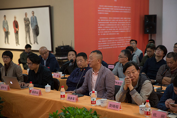 座谈会上,许江院长首先发言。他总结了自己对习总书记文艺座谈会精神逐渐深入理解的三个阶段,介绍了“时代领跑者”美术作品创作项目的情况,阐释了“秉人民思想深根中国社会,继民学思想再兴乡土生活”的思想。许院长强调“人民思想”的核心是人民,这个人民,既是中国多民族大家庭中的社会共同体,又是优秀传统和社会主义价值体系熏陶下文化共同体。他强调了人民的三种品格,人民是富有时代精神的,人民是有肉身的,人民是有根性的。