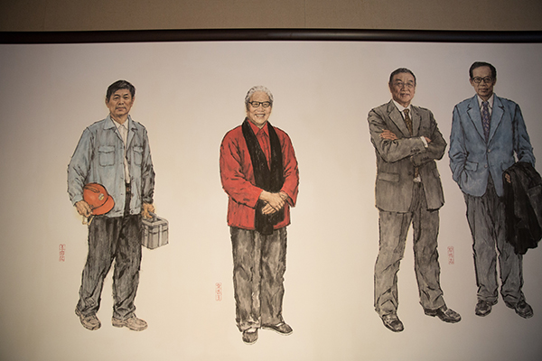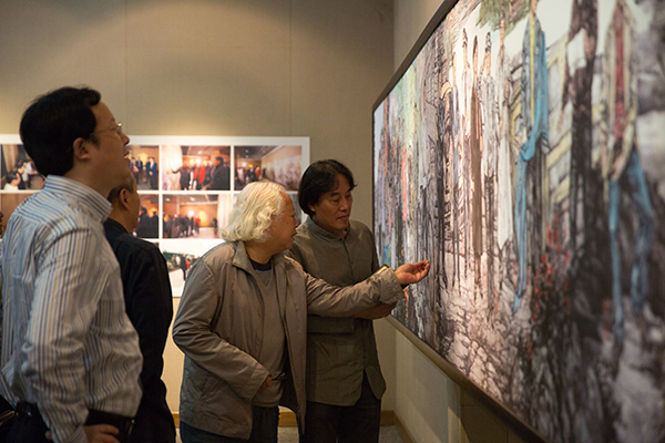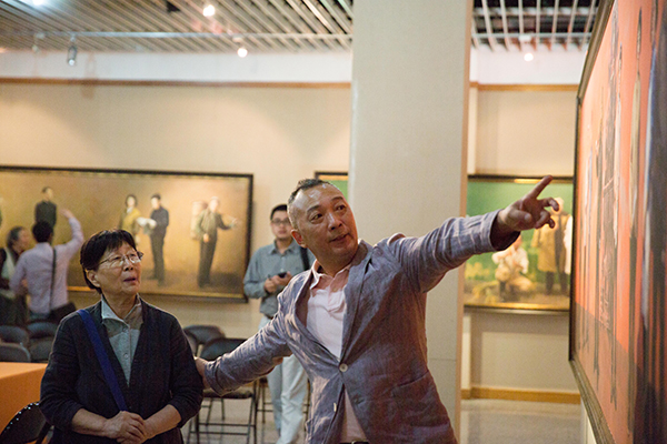 “时代领跑者”创作者代表杨参军、吴宪生、孙景刚、王赞等分别讲述了他们所带领的小组绘画背后的故事。他们均表示,了解到这个任务的重要性后,他们慢慢从起初的打怵,到在创作料资收集过程中深受震撼,到完成任务后的国博展出,再次审视时代领跑者群像,他们感受到了身为艺术家责任意识的重要性。