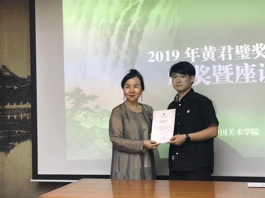 6月12日下午,我校2019年黄君璧奖学金颁奖暨座谈会在南山校区举行。台北黄君璧文化艺术协会会长黄湘詅出席并为获奖学生颁奖。颁奖暨座谈会由学工部副部长徐增鎏主持,中国画与书法艺术学院副院长韩璐作为优秀指导教师代表谈了指导学生创作的心得。