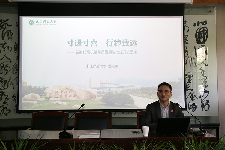 11月1日下午,我院在南山校区举行了第七期“良友讲习班”学生工作培训、邀请到浙江省委党校副教授杨日鹏,杭州电子科技大学学工部部长钱波,第七届全国高校辅导员素质能力大赛一等奖获得者、浙江师范大学辅导员程松泉,分别以“改革开放四十年”、“聚焦培育STARS学工文化 全面服务学生成长成才”、“寸进寸喜,行稳致远——新时代高校辅导员的素质能力提升”为题为全体专兼职辅导员开展讲座。培训由学工部副部长潘晓蕾主持。
