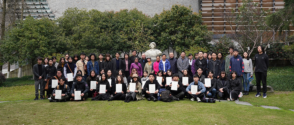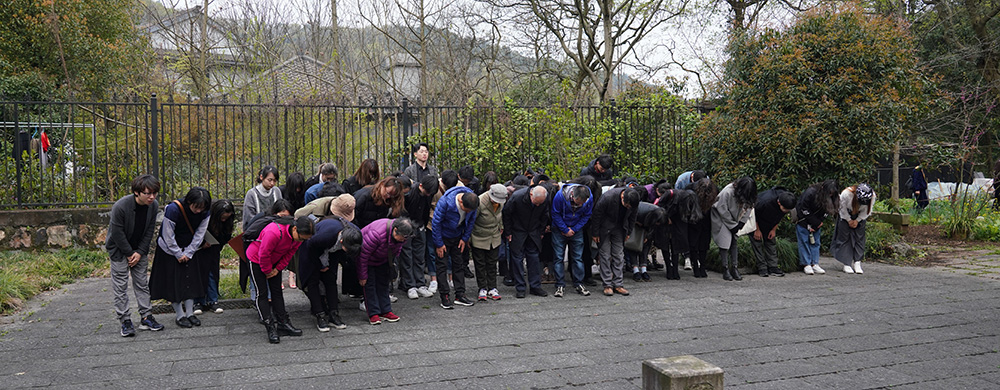 颁奖仪式后,所有参会人员向矗立在南山文化广场的夏朋烈士雕像献上小白花,并合影留念。随后,乘车前往玉皇山莲花峰祭扫了夏朋墓。重温校史,缅怀先烈,这是所有国美学子在清明来临之前对夏朋烈士最好的纪念。