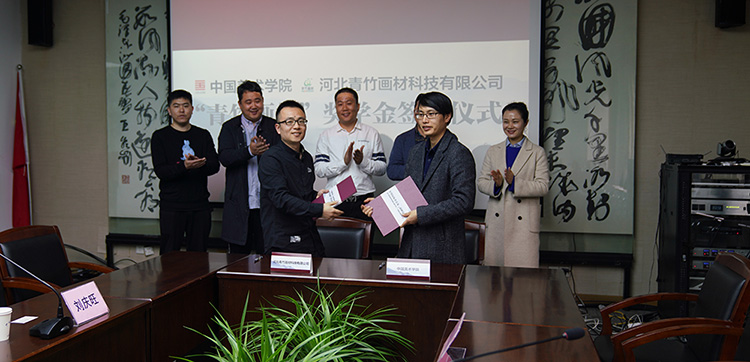 3月28日,中国美术学院“青竹画材”奖学金签约仪式在南山校区8号楼一楼会议室举行。